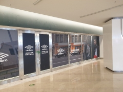 스타필드 코엑스몰 엄브로 매장 가설 방염시트지 제작,시공