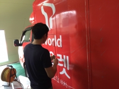 탑차 랩핑 시공 장면